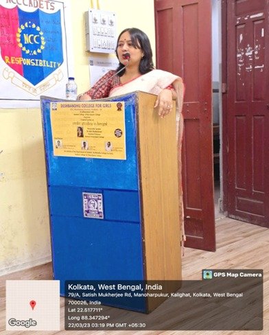 *Special Lecture: Dr. Aditi Bhattacharya, Assistant Professor at Barasat College, delivered a lecture on "Vedic Studies in Bengal" on March 22, 2023.