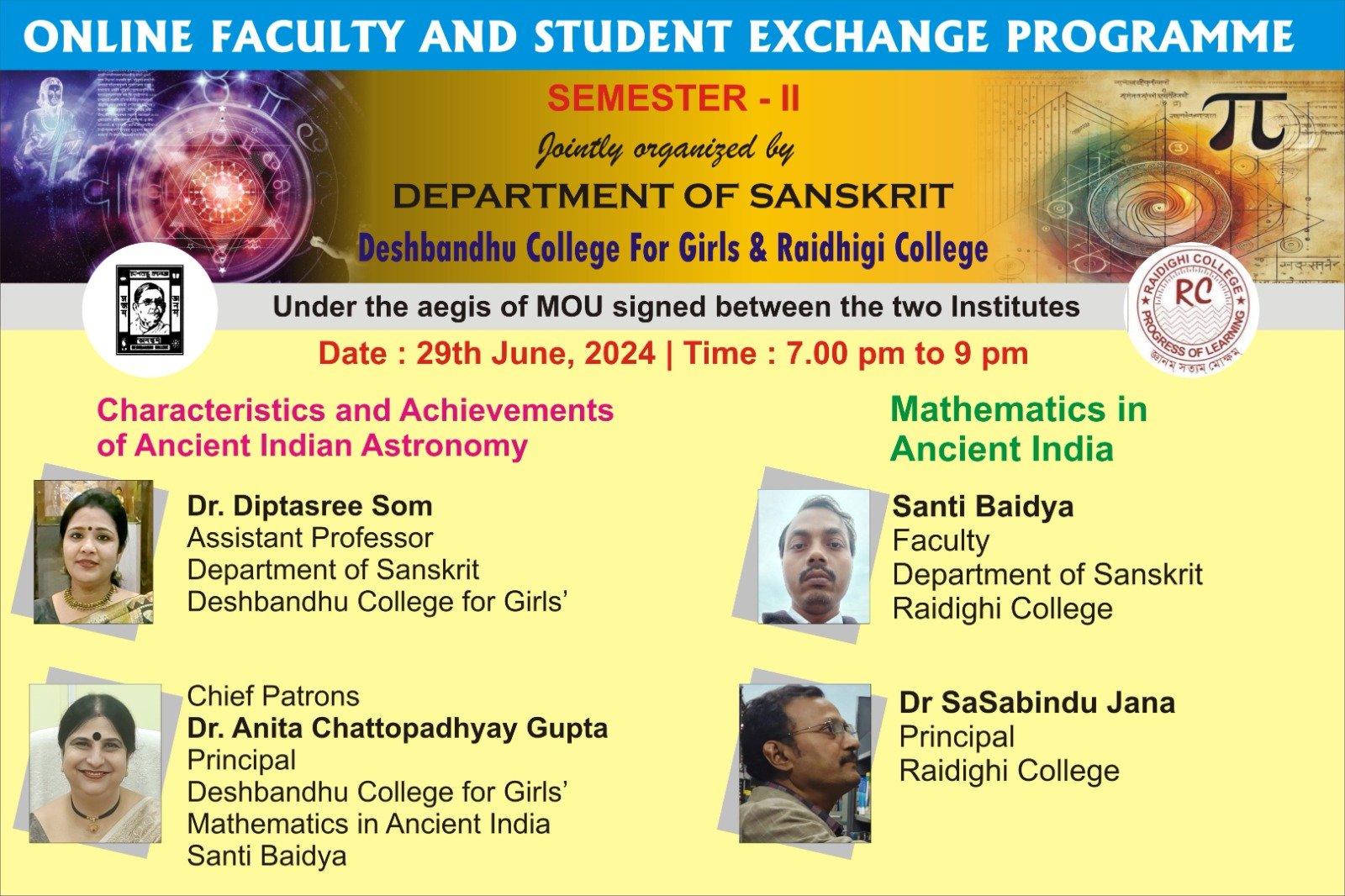 *Online Faculty Exchange Program: The department jointly organized an online faculty exchange program with Raidighi College on June 29, 2024.